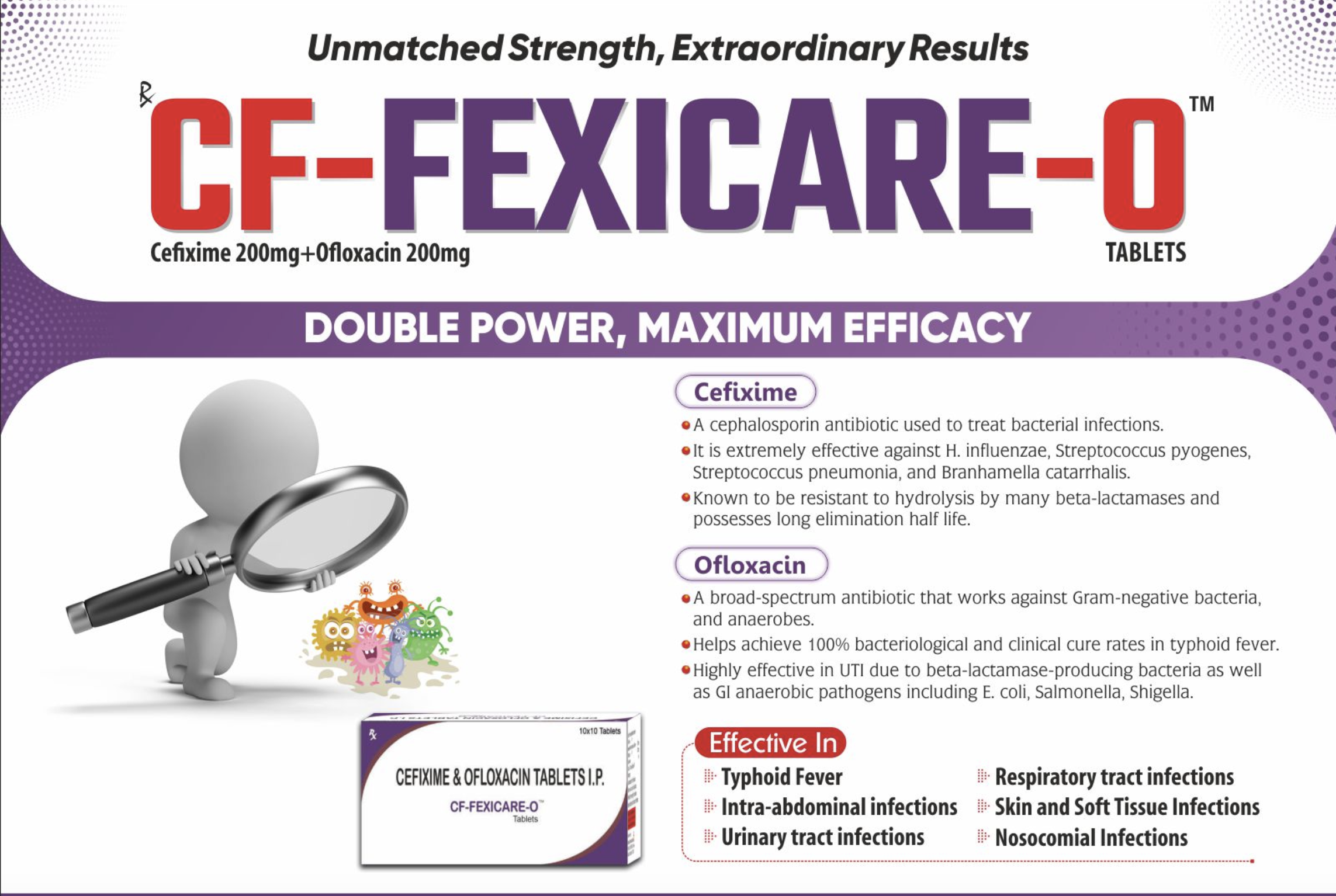 • Helps achieve 100% bacteriological and clinical cure rates in typhoid fever.