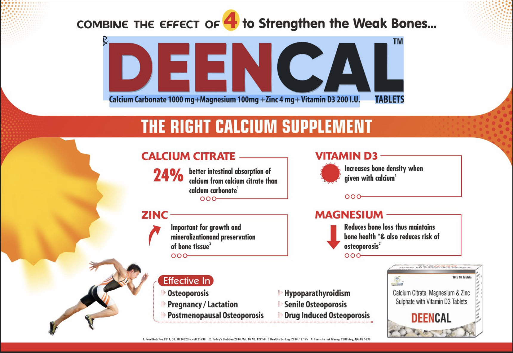 Calcium Carbonate 1000 mg + Magnesium 100mg + Zinc 4mg+ Vitamin D3 200 1.U